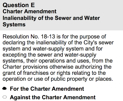 By passing question E, Baltimore City would protect our water system from the most extreme forms of privatization.